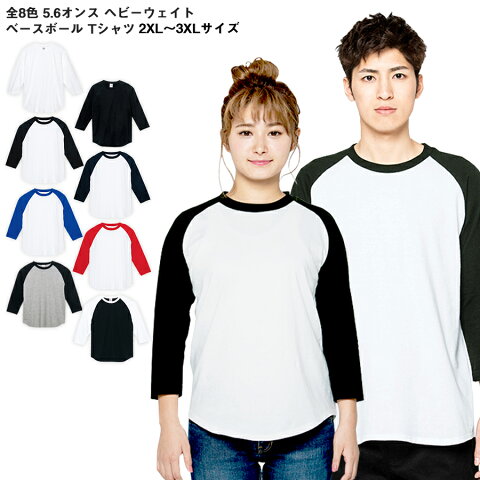 ヘビーウェイト ベースボール Tシャツ 5.6オンス レッド ブルー ブラック グレー 2XL〜3XL スポーツ スタッフ ビジネス ユニフォーム 父の日 学祭 イベント カジュアル スポーツ ゴルフ 通勤 通学 ユニフォーム 男女兼用